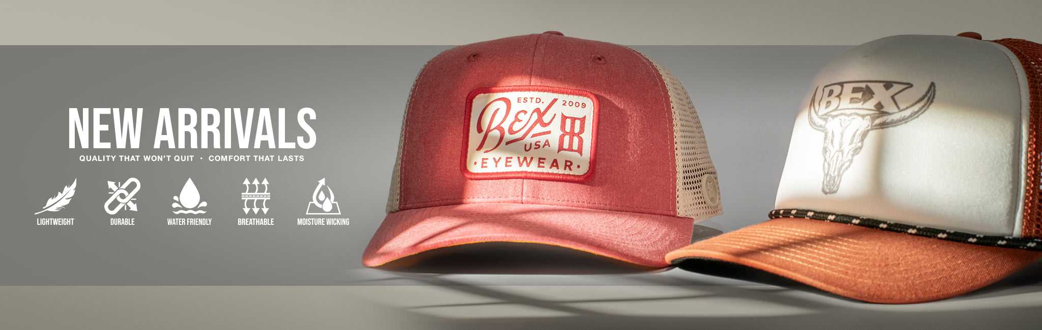 BEX Caps communicate style, class, and performance. BEX caps implement specialized design materials with multi-panel construction featuring a perfect-fit extra structured crown. Both fitted and adjustable styles are available.