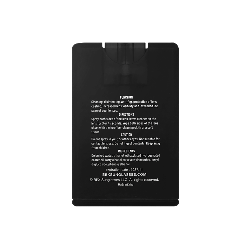 Our lens cleaner will clean, disinfect, and eliminate fog on any sunglass lens. Extend the lifespan of your sunglasses with our Anti-Fog Lens Cleaner solution!