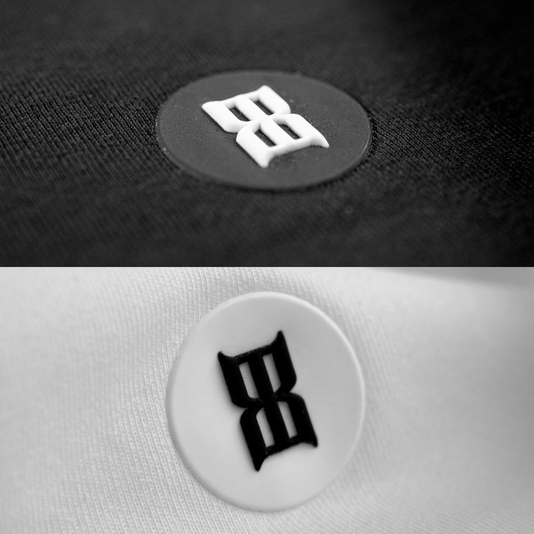 Features a small silicone branded patch on the front right hemline.